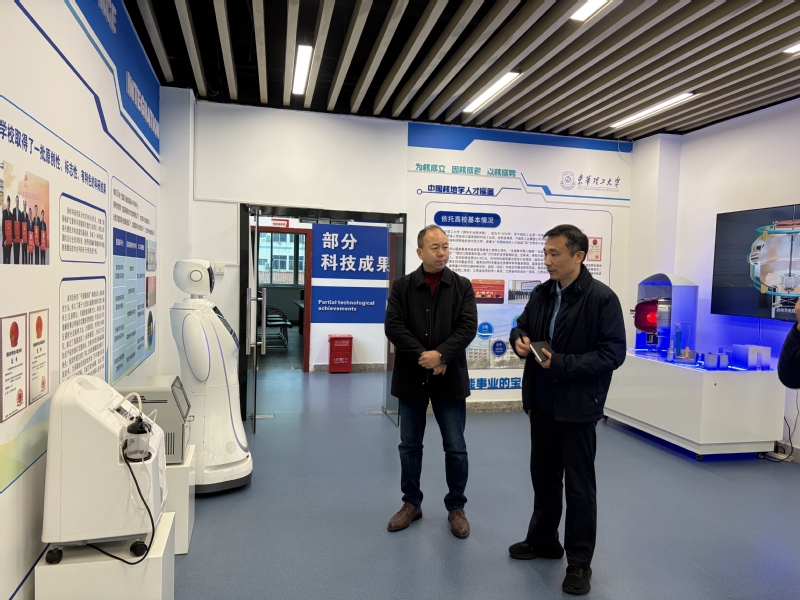 2025年12月22日下午,同方科技创新有限公司总经理秦占峰一行莅临东华理工大学国家大学科技园参观交流,深入考察园区建设发展、成果转化及企业孵化情况。国家大学科技园管理办公室主任、江西东华科技园有限责任公司董事长王合义携相关负责人陪同参观。